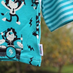 Tyrkysové tričko s potiskem a dlouhými pruhovanými rukávy